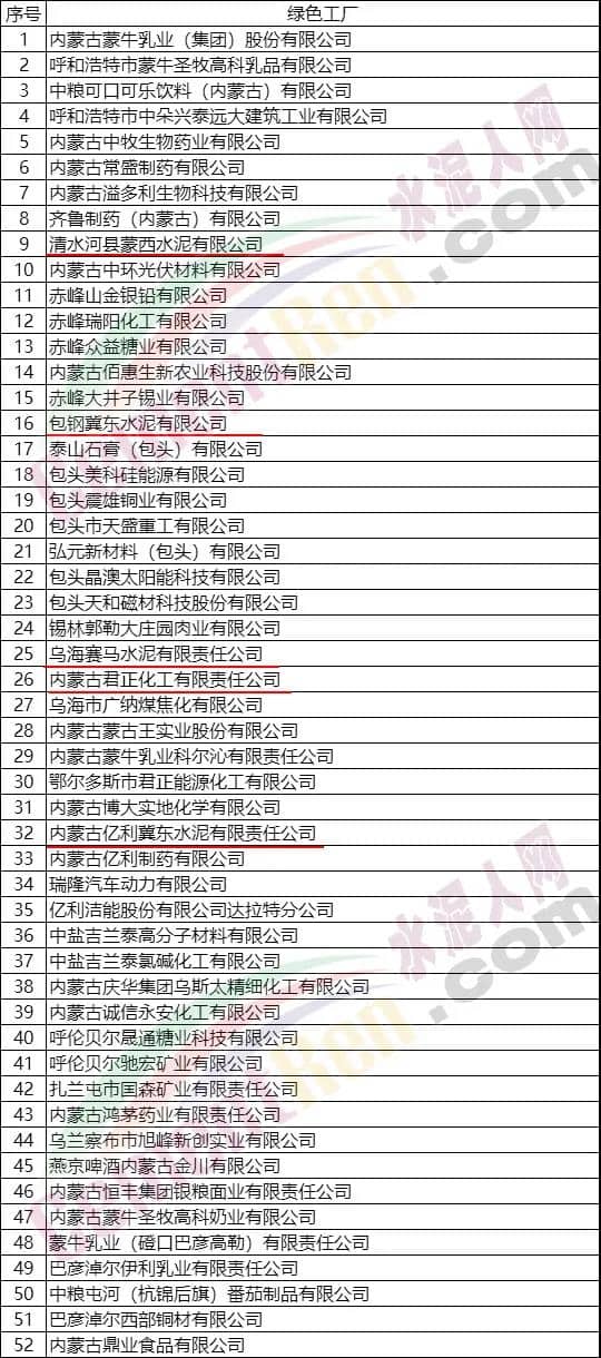 2020年內(nèi)蒙古自治區(qū)綠色制造示范名單