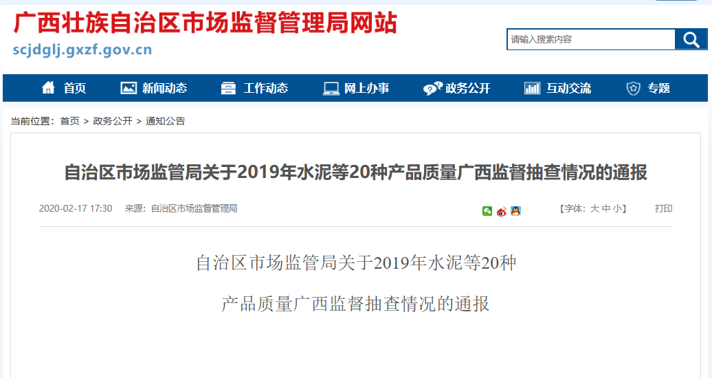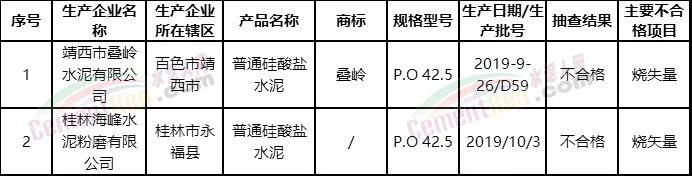 廣西市場監(jiān)管局官網(wǎng)通報2019年水泥等20種產(chǎn)品質(zhì)量廣西監(jiān)督抽查情況稱:2019年共抽查90家企業(yè)的166批次水泥產(chǎn)品,其中生產(chǎn)領(lǐng)域抽查159批次,流通領(lǐng)域抽查7批次。不合格產(chǎn)品2批次,不合格發(fā)現(xiàn)率為1.2%。其中生產(chǎn)領(lǐng)域抽查合格157批次,不合格產(chǎn)品2批次,不合格發(fā)現(xiàn)率為1.26%;抽查不合格項目為燒失量。