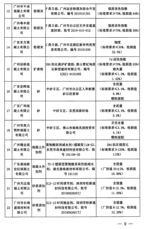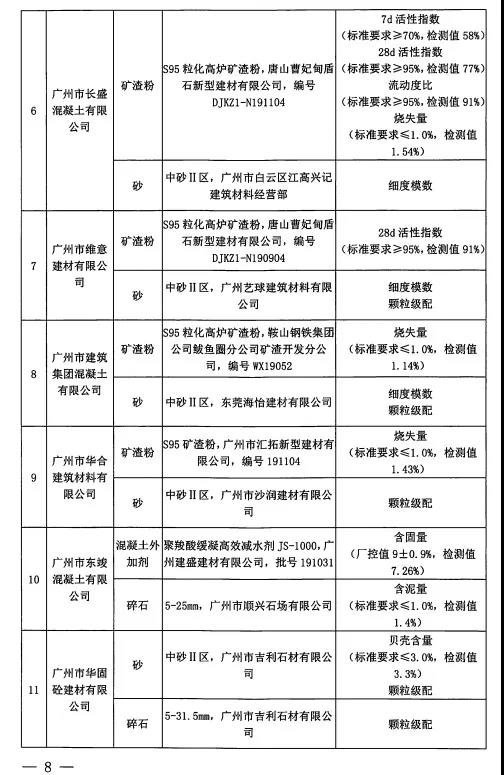 對上上述監(jiān)督抽檢不合格的企業(yè)列為重點檢查對象,廣州市散辦將加大監(jiān)管力度,重點核查上述企業(yè)質(zhì)量管理情況,并不定期開展質(zhì)量抽檢 。將本次抽檢的不合格原材料列入不合格原材料名錄,建議全市預(yù)拌混凝土企業(yè),預(yù)拌砂漿企業(yè)謹慎選用名錄內(nèi)的原材料。