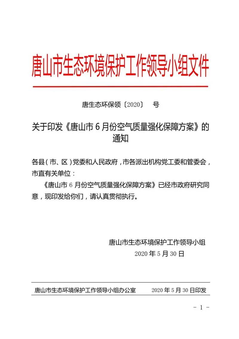 日前,河北省唐山市生態(tài)環(huán)境保護工作領(lǐng)導(dǎo)小組發(fā)布《唐山市6月份空氣質(zhì)量強化保障方案》稱:根據(jù)年初各地與市委市政府簽訂的責(zé)任狀,按照時間任務(wù)“雙過半”要求,明確了各縣(市、區(qū))1-6月份需完成的空氣質(zhì)量指標。