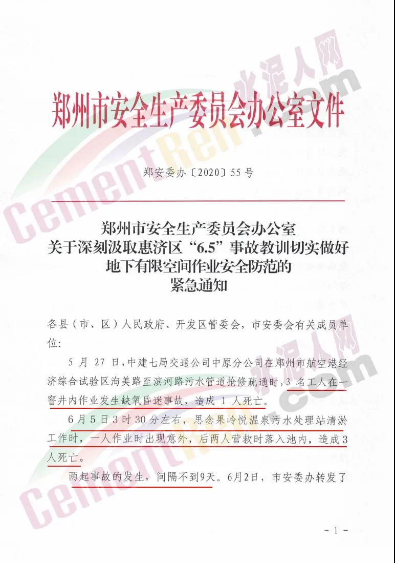 河南鄭州應(yīng)急管理局發(fā)布《關(guān)于深刻汲取惠濟(jì)區(qū)“6.5”事故教訓(xùn)切實做好地下有限空間作業(yè)安全防范的緊急通知》(鄭安委辦〔2020〕55號)提到: