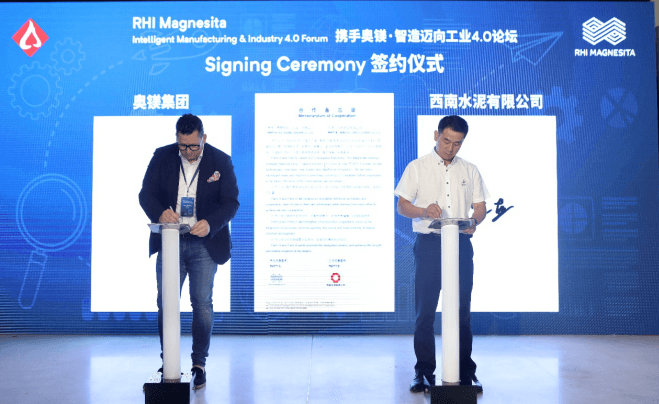 沙發(fā)座談結(jié)束后,奧鎂集團和西南水泥有限公司進行了合作備忘錄簽署儀式。雙方約定,未來雙方將不斷加強技術(shù)交流與合作,在充分發(fā)揮自身優(yōu)勢的同時取長補短,促進合作共贏。同時強化信息化合作,注重資源整合,啟迪思想碰撞,共同發(fā)展進步,共同推進數(shù)字化項目,促進項目順利有序推進。