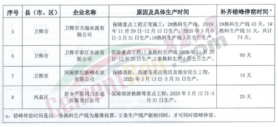 7、河南世紀新峰水泥有限公司需補齊錯峰停窯時間19天;