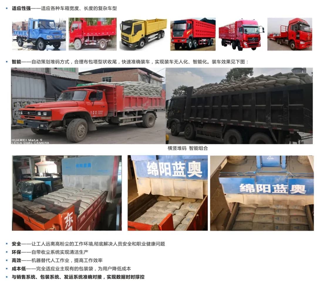 作為水泥行業(yè)智能裝車領(lǐng)域的佼佼者,綿陽藍奧科技提供的水泥無人裝車系統(tǒng),能實現(xiàn)水泥裝車無人化、無塵化、智能化。其特點如下: