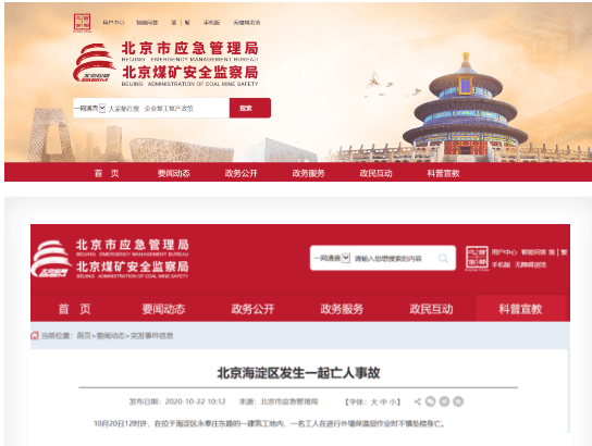 10月20日12時(shí)許,在位于北京市海淀區(qū)永泰莊東路的一建筑工地內(nèi),一名工人在進(jìn)行外墻保溫層作業(yè)時(shí)不慎墜樓身亡。