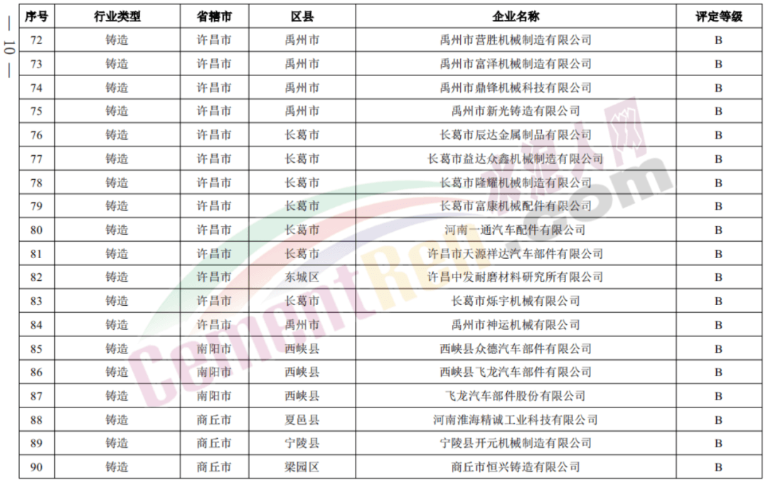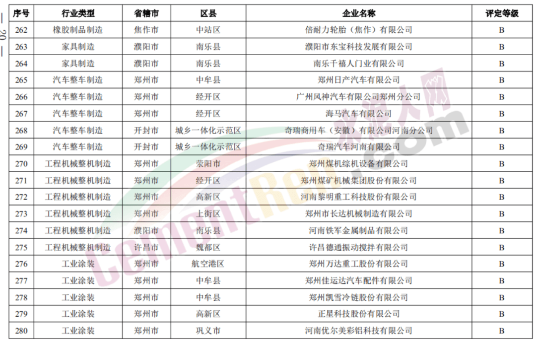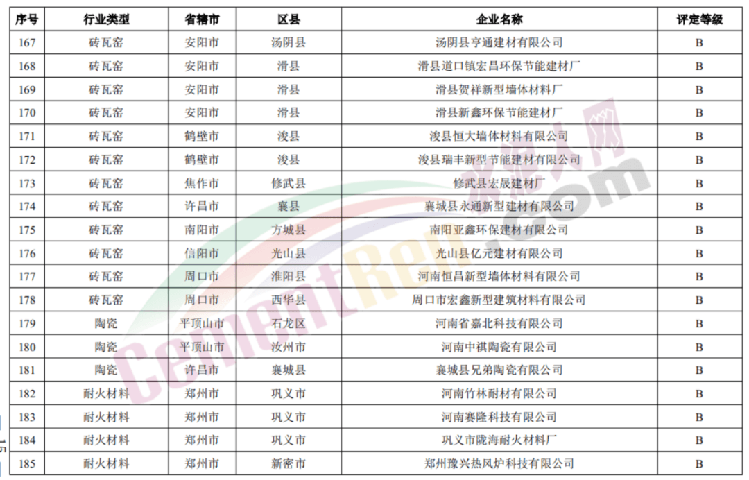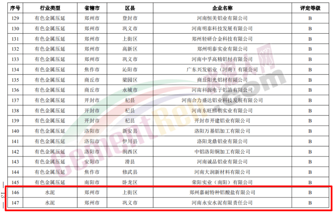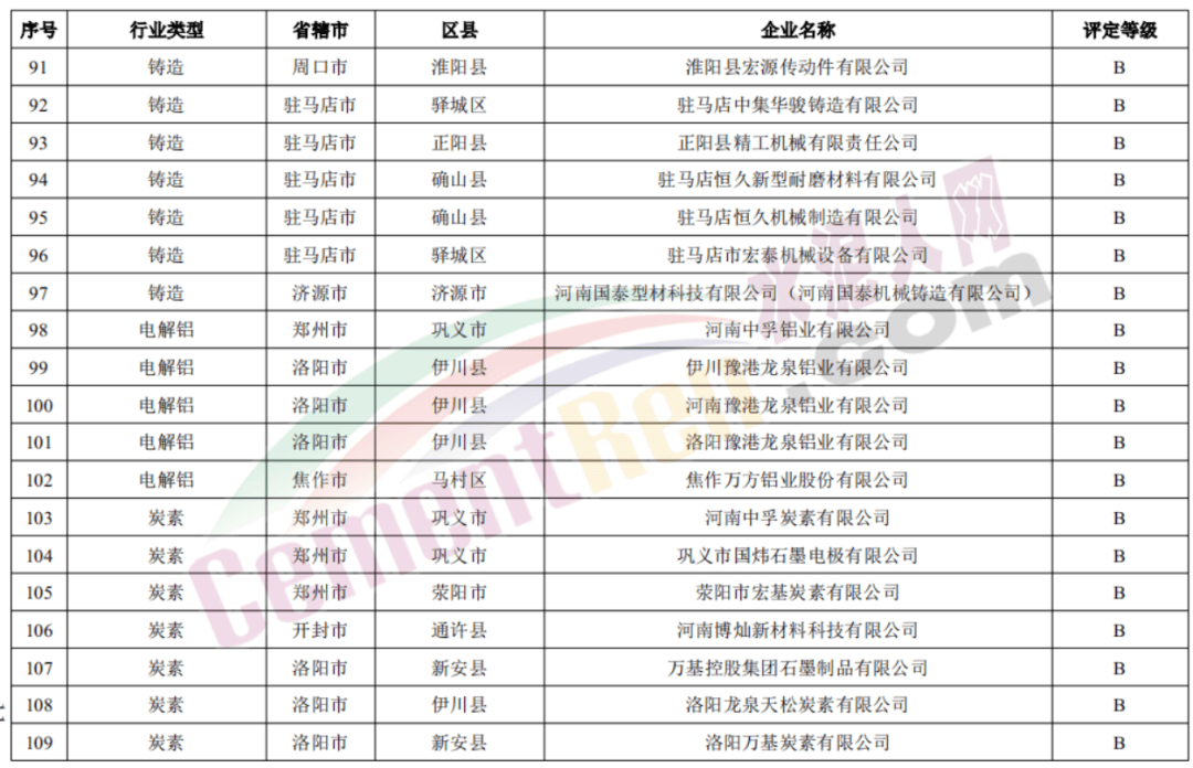 包括登封中聯(lián)、新安中聯(lián)、洛陽中聯(lián)、濟源中聯(lián)、鄧州中聯(lián)、淅川中聯(lián)、南陽中聯(lián)、安陽中聯(lián)、安陽湖波、大地水泥等20家企業(yè)獲評B級。