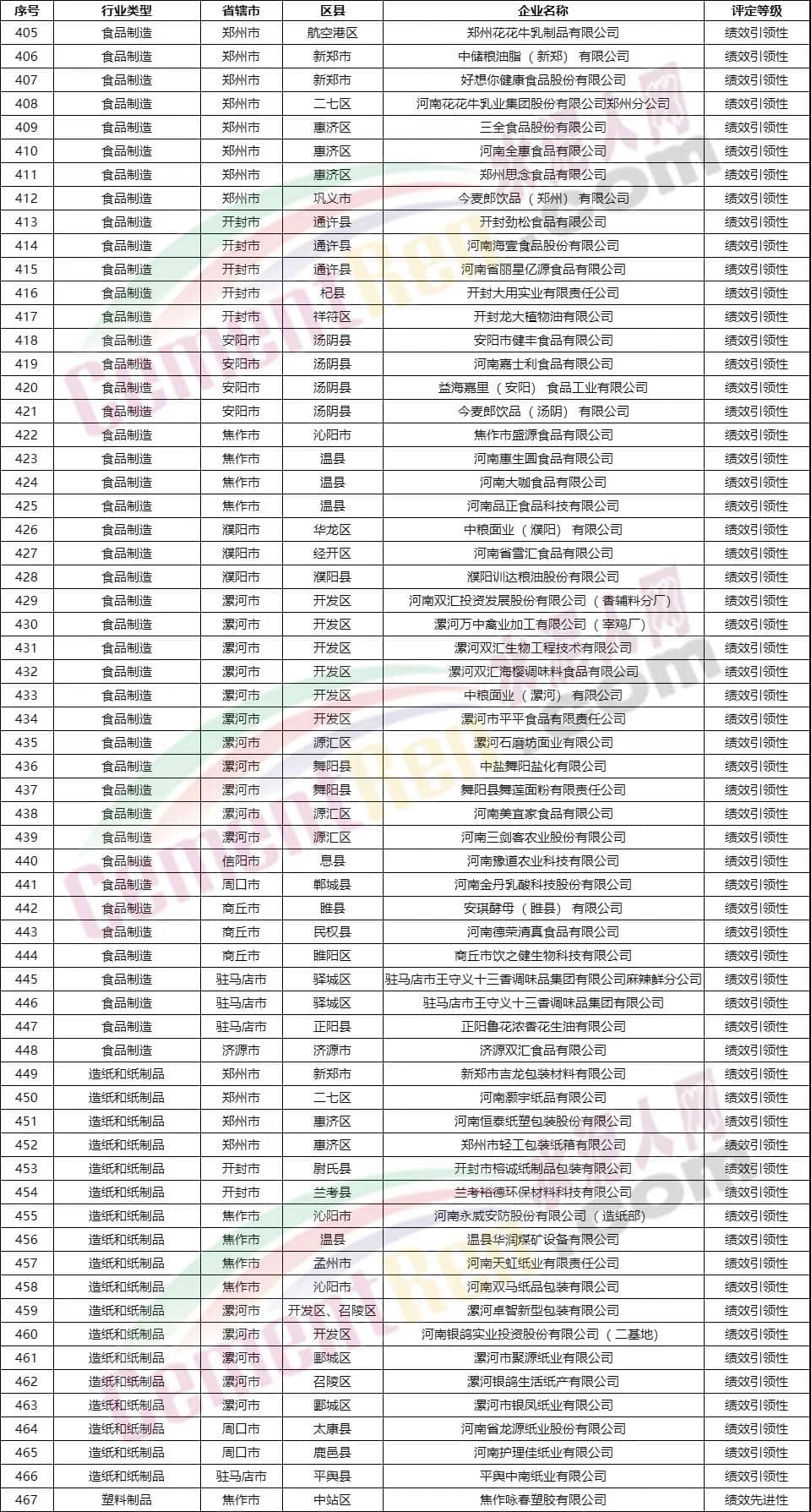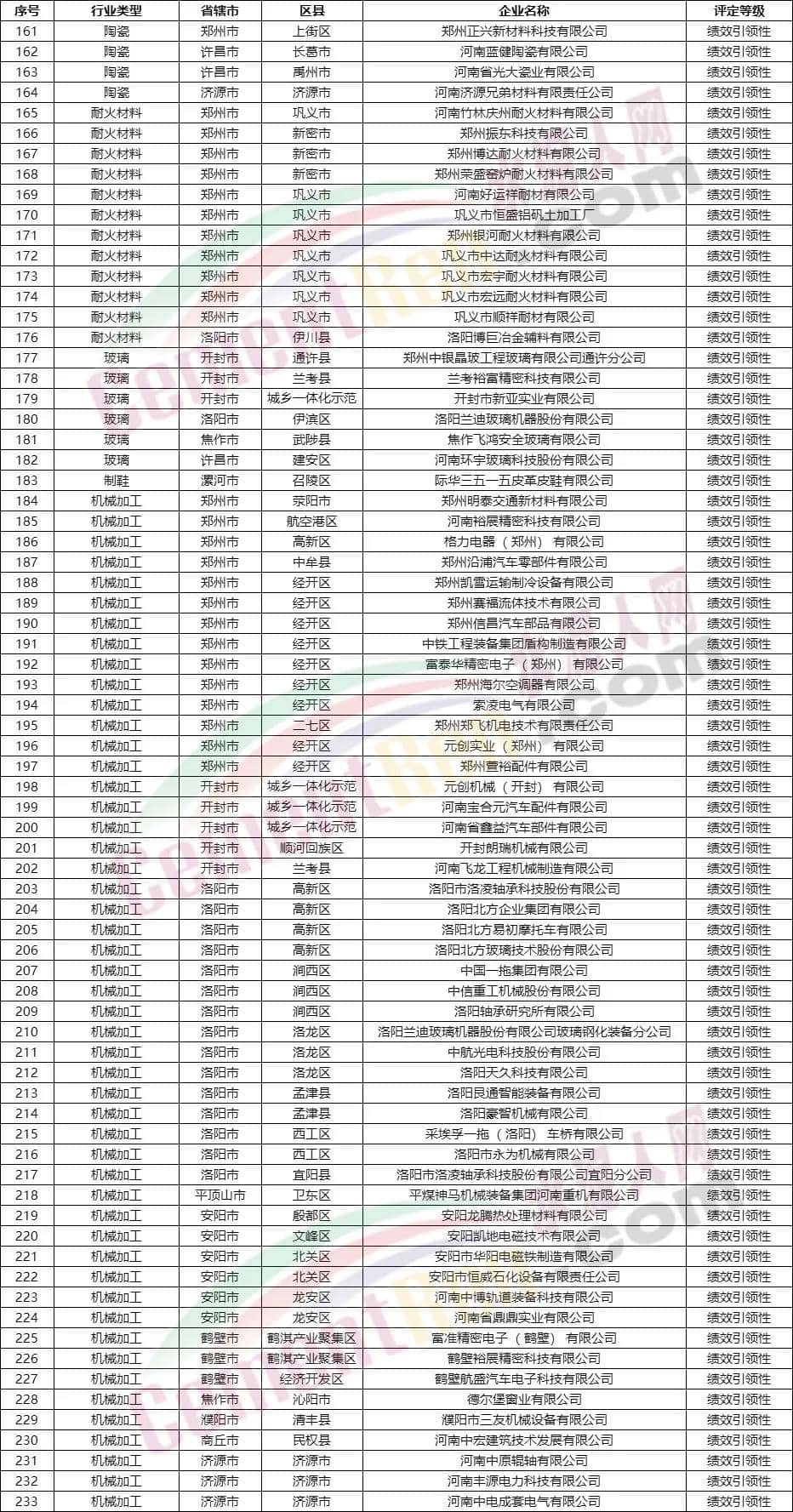 績效評級績效引領(lǐng)性企業(yè)名單