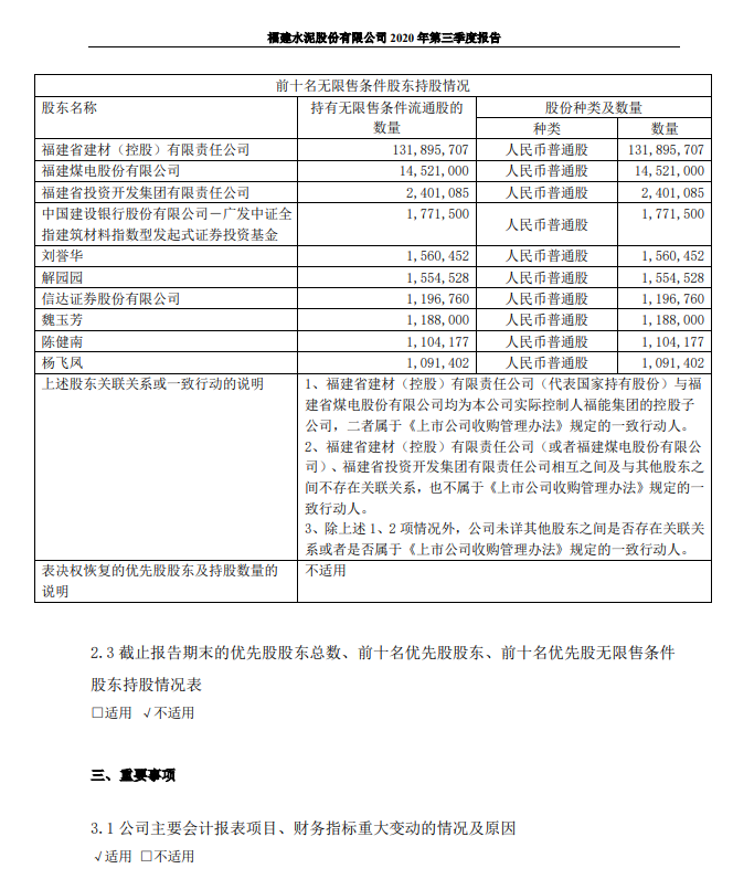 全國水泥價格指數(shù)為150.55點,年內首次向上突破150點,10月累計已經上漲超過2.8%。其中塔牌集團公告稱,受益于整體水泥綜合售價高于上年同期,前三季度凈利同比增31%。對于第三季度凈利潤“折戟”與對第四季度的業(yè)績預期,福建水泥有關人士較為“謹慎”,表示按正常來說,進入旺季應該漲價,但能否上漲“很難說”。如此“謹慎”或許與福建省水泥企業(yè)的格局有關。水泥由于附加價值較低、運費成本較大,具有明顯的區(qū)域性特征。而國內水泥行業(yè)經過“洗牌”普遍集中度較高,部分省區(qū)前三大水泥企業(yè)產能集中度超過70%,而福建前三大水泥企業(yè)產能集中度為36.95%,排名全國倒數(shù)第二。產能集中度較低容易“互打價格戰(zhàn)”。數(shù)據則顯示,2020年上半年,福建水泥、塔牌集團、冀東水泥、海螺水泥的銷售毛利率分別為26.60%、43.82%、35.67%、34.93%。福建水泥的銷售毛利率明顯低于同行。記者注意到,三季度福建水泥前十大股東“大進大出”,除了原有“老股東”,7個席位均為新進,其中中證全指建筑材料指數(shù)型基金新進177萬股、信達證券新進120萬股。