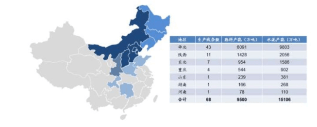 產(chǎn)能主要布局在京津冀、陜西、山西、內(nèi)蒙、東北、重慶、山東、河南和湖南地區(qū), 共計 13 個省/直轄市, 其中華北區(qū)域為公司產(chǎn)能主要區(qū)域,熟料產(chǎn)能占公司整體產(chǎn)能的 64%, 其中核心區(qū)域京津冀地區(qū)占總體比重約 46%,其次為陜西和東北區(qū)域,分別占比為 15%和 10%。