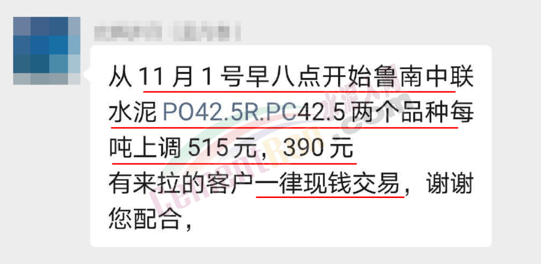 昨日,山東區(qū)域主導(dǎo)企業(yè)中聯(lián)水泥也發(fā)通知稱自11月1日起上調(diào)PO42.5R及PC42.5兩個品種水泥價格,上調(diào)后PO42.5R水泥執(zhí)行515元/噸,PC42.5水泥執(zhí)行390元/噸。