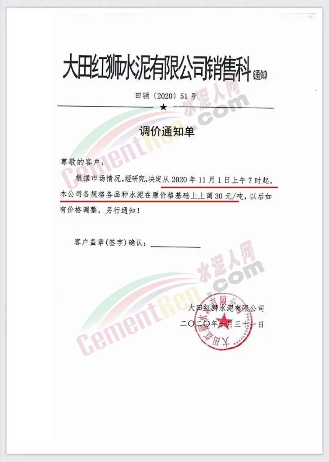同期,西南區(qū)域川渝地區(qū)以及貴州市主要品牌企業(yè)陸續(xù)發(fā)布調(diào)價(jià)通知,一次性上調(diào)50元/噸,華東福建區(qū)域也通知上調(diào)水泥價(jià)格30元/噸。