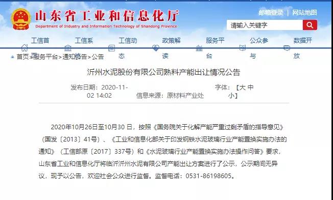 沂州水泥退出75萬噸/年產能公告