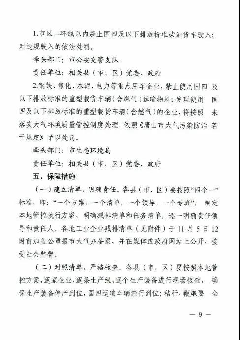 2.鋼鐵、焦化、水泥、電力等重點用車企業(yè),禁止使用國四及以下排放標準的重型載貨車輛(含燃氣)運輸物料;發(fā)現使用國四及以下排放標準的重型載貨車輛(含燃氣)的企業(yè),將按照未落實大氣環(huán)境質量管控制度處理,依照《唐山市大氣污染防治若干規(guī)定》予以處罰。