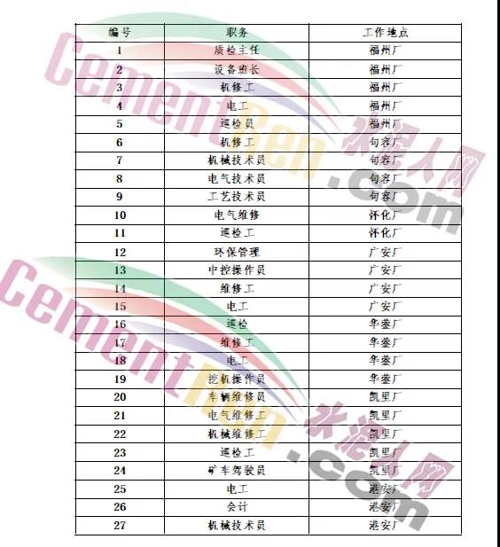 更多水泥集團(tuán)崗位招聘,請繼續(xù)關(guān)注水泥人網(wǎng),或?qū)⒑啔v發(fā)至水泥人網(wǎng)編輯部郵箱。
