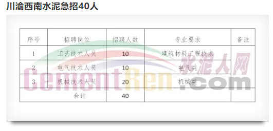 同期,海螺水泥川渝區(qū)域招聘包括化工工藝、采礦、電氣、熱能、財(cái)務(wù)等崗位共65人