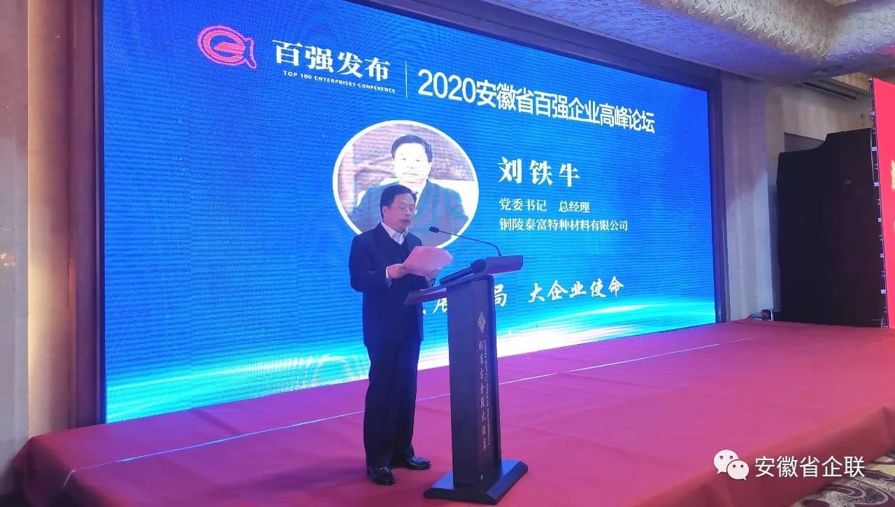 會議中,銅陵有色集團公司黨委書記、董事長楊軍,安徽海螺集團黨委書記、董事長高登榜,銅陵泰富特種材料有限公司黨委書記、總經(jīng)理劉鐵牛作為百強企業(yè)代表先后作交流發(fā)言。