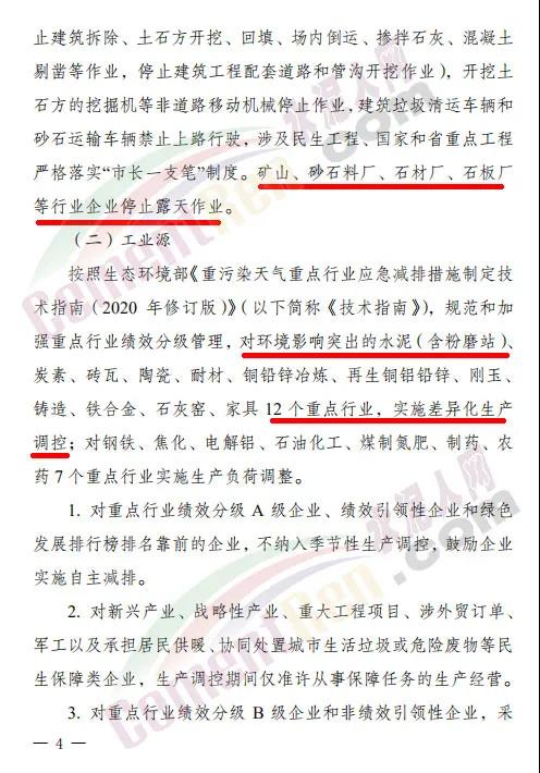 (二)工業(yè)源,規(guī)范和加強重點行業(yè)績效分級管理,對環(huán)境影響突出的水泥(含粉磨站)、炭素、磚瓦、陶瓷、耐材、石灰窯等 12 個重點行業(yè),實施差異化生產(chǎn)調(diào)控;對鋼鐵、焦化、電解鋁、石油化工等7 個重點行業(yè)實施生產(chǎn)負(fù)荷調(diào)整。