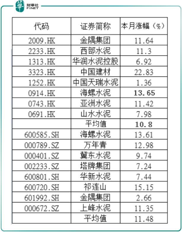但需要注意的是,與A、H股資本市場水泥股板塊漲勢欣欣向榮的景象不同的是,個股表現則是差強人意,多數水泥股跑輸所處板塊漲幅及大市,存在分化的情況。