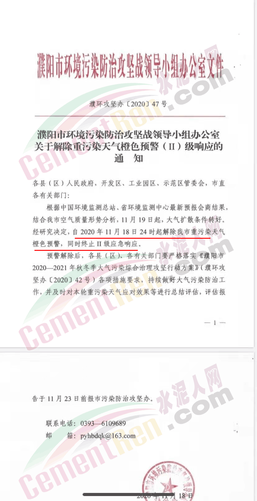 根據(jù)中國(guó)環(huán)境監(jiān)測(cè)總站、區(qū)域預(yù)報(bào)中心和省生態(tài)環(huán)境監(jiān)測(cè)中心聯(lián)合會(huì)商結(jié)果,預(yù)計(jì)11月19日起,擴(kuò)散條件轉(zhuǎn)好。經(jīng)省污染防治攻堅(jiān)戰(zhàn)領(lǐng)導(dǎo)小組辦公室研究決定,為科學(xué)應(yīng)對(duì)重污染天氣,盡量減少應(yīng)急減排措施對(duì)人民群眾生產(chǎn)生活的影響,按照省攻堅(jiān)辦《關(guān)于解除重污染天氣預(yù)響應(yīng)的通知》要求,經(jīng)市環(huán)境攻堅(jiān)辦研究決定,于2020年11月18日24時(shí)解除我市重污染天氣預(yù)警,終止應(yīng)急響應(yīng)。此次重污染天氣應(yīng)對(duì)工作,各級(jí)各有關(guān)部門高度重視,積極采取管控措施,盡最大努力減少污染物排放,取得較好的成效。11月19至20日,全省大部分區(qū)域部分時(shí)段可能還會(huì)出現(xiàn)輕度污染。按照省攻堅(jiān)辦要求,各縣、區(qū)政府及市重污染天氣管控各成員單位應(yīng)加強(qiáng)季節(jié)性管控和治理措施,并認(rèn)真做好本次橙色預(yù)警(II 級(jí))響應(yīng)階段的評(píng)估工作。請(qǐng)各縣、區(qū)和各市成員單位于11月21日下午18:00時(shí)前將本縣區(qū)(部門)重污染天氣應(yīng)急響應(yīng)評(píng)估報(bào)告報(bào)送至市環(huán)境攻堅(jiān)辦應(yīng)急部。聯(lián) 系 人:蘇 華郵 箱:gjbyjz@163.com聯(lián)系電話:23620015、22660121