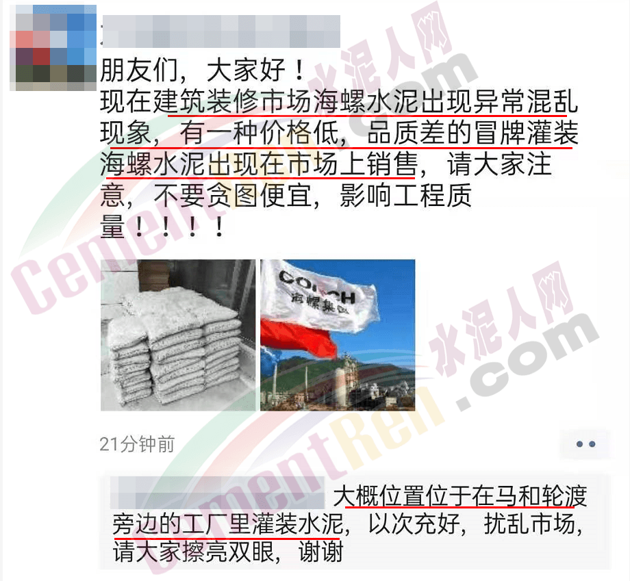 類似的假冒偽劣在各區(qū)域時(shí)有發(fā)生,且多為無證生產(chǎn)的黑作坊,類似的作坊生產(chǎn)產(chǎn)品質(zhì)量嚴(yán)重不合格,不僅給下游市場帶來諸如價(jià)格超低,投訴超多等不僅有損正規(guī)企業(yè)品牌形象,更令市場亂相頻發(fā)。用于建筑裝修或民建市場,更是隱患重重。類似的作坊生產(chǎn)和銷售的多數(shù)是PC42.5或32.5級水泥。