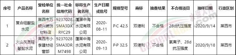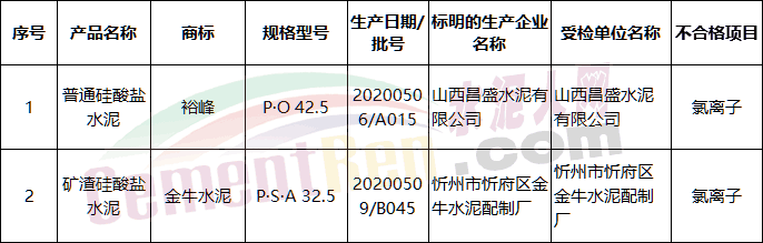2020年水泥產(chǎn)品質(zhì)量省級監(jiān)督抽查結(jié)果