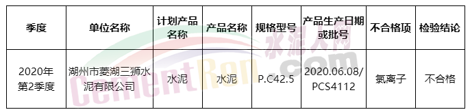 浙江省市場監(jiān)督管理局網(wǎng)站發(fā)布關(guān)于2020年產(chǎn)品質(zhì)量監(jiān)督抽查水泥產(chǎn)品抽查了杭州、寧波、溫州、湖州、嘉興、紹興、衢州、舟山等8個(gè)地區(qū)63家企業(yè)生產(chǎn)的63批次水泥產(chǎn)品,其中1批次產(chǎn)品不合格,不合格發(fā)現(xiàn)率為1.59%。不合格項(xiàng)目涉及氯離子。