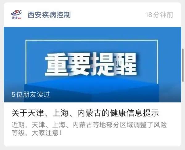 西安疾病控制中心再次發(fā)布健康提示,11月7日以來(lái),天津市濱海新區(qū)東疆港區(qū)(含瞰海軒小區(qū))、漢沽街、中心漁港冷鏈物流區(qū)A區(qū)和B區(qū);上海市浦東新區(qū)祝橋鎮(zhèn)營(yíng)前村、新生小區(qū)、周浦鎮(zhèn)明天華城小區(qū)、張江鎮(zhèn)順和路126弄小區(qū)的來(lái)返人員;內(nèi)蒙古呼倫貝爾市滿州里市東山街道、北區(qū)街道的來(lái)返人員,請(qǐng)主動(dòng)向所在社區(qū)報(bào)備相關(guān)活動(dòng)情況,配合各區(qū)縣(開(kāi)發(fā)區(qū))疫情防控指揮部落實(shí)集中隔離等疫情防控措施,在管控當(dāng)天和第13天各進(jìn)行一次核酸檢測(cè)。