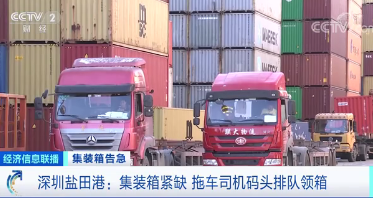在鹽田港碼頭的集裝箱堆場,記者觀察到現(xiàn)在出現(xiàn)了拖車司機(jī)排隊(duì)領(lǐng)箱的場景。近期由于境外疫情持續(xù),集裝箱流轉(zhuǎn)速度放慢,我國短暫地出現(xiàn)了缺箱的情況,前來領(lǐng)箱的拖車司機(jī)有時候甚至?xí)o功而返。
