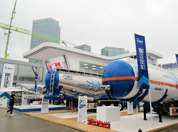 在展會(huì)現(xiàn)場(chǎng),中集瑞江全新一代智能混凝土攪拌車“紅巖瑞江”攪拌車、“鋁神1號(hào)”液罐車以及2021款鋁合金粉罐車亮相,吸引了眾多參展人士的圍觀。