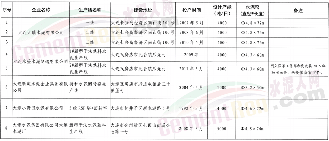 遼寧省水泥熟料生產(chǎn)線清單截止時間:2020年11月