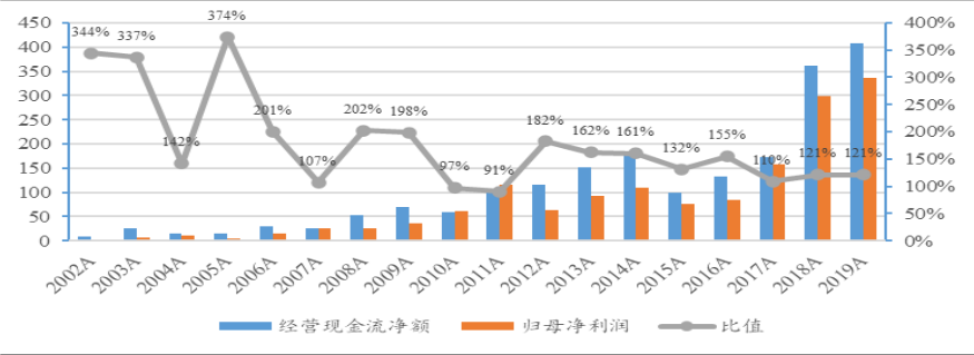 2016 年至今良好的利潤(rùn)和現(xiàn)金流使海螺水泥資產(chǎn)負(fù)債表的極大修復(fù),資產(chǎn)負(fù)債率值下降到 20%的水平;同時(shí)海螺水泥分紅相對(duì)不高,致使凈資產(chǎn)累計(jì),在凈利潤(rùn)難以繼續(xù)大幅增長(zhǎng)的情況下凈資產(chǎn)收益率水平提升有一定壓力。上市以來(lái)海螺水泥礦山資源優(yōu)勢(shì)、銷(xiāo)售成本優(yōu)勢(shì)提供優(yōu)異的現(xiàn)金流,支撐海螺水泥資本開(kāi)支??梢钥吹皆谡麄€(gè)產(chǎn)能擴(kuò)張階段主要依靠經(jīng)營(yíng)凈現(xiàn)金流支撐,股權(quán)融資和債券融資數(shù)額均較少。海螺水泥對(duì)下游商混、渠道市場(chǎng)議價(jià)能力較強(qiáng)也能在現(xiàn)金流中反應(yīng)。資產(chǎn)負(fù)債率方面,上市之初產(chǎn)能快速擴(kuò)張致使資產(chǎn)負(fù)債率快速上升,2007-2008 年的股權(quán)融資 156 億元使資產(chǎn)負(fù)債率從 60%以上降至 40%,2011—2013 年發(fā)行企業(yè)債并購(gòu)產(chǎn)能使資產(chǎn)負(fù)債率有所上升,而后隨著資本開(kāi)支減少、利潤(rùn)增長(zhǎng),負(fù)債率快速下降 20%,大幅優(yōu)于行業(yè)其他公司和絕大部分其他周期性行業(yè)龍頭公司。海螺水泥良好資產(chǎn)負(fù)債表和儲(chǔ)備的大量現(xiàn)金賦予企業(yè)較強(qiáng)風(fēng)險(xiǎn)抵御能力,并能在新增產(chǎn)能受禁的情況下借機(jī)并購(gòu)?fù)卣巩a(chǎn)能、進(jìn)入其他行業(yè)。根據(jù)我們預(yù)測(cè),到 2020 年底海螺水泥現(xiàn)金和理財(cái)產(chǎn)品總額將達(dá)到 900 億元。近幾年現(xiàn)金凈流額如圖3所示。