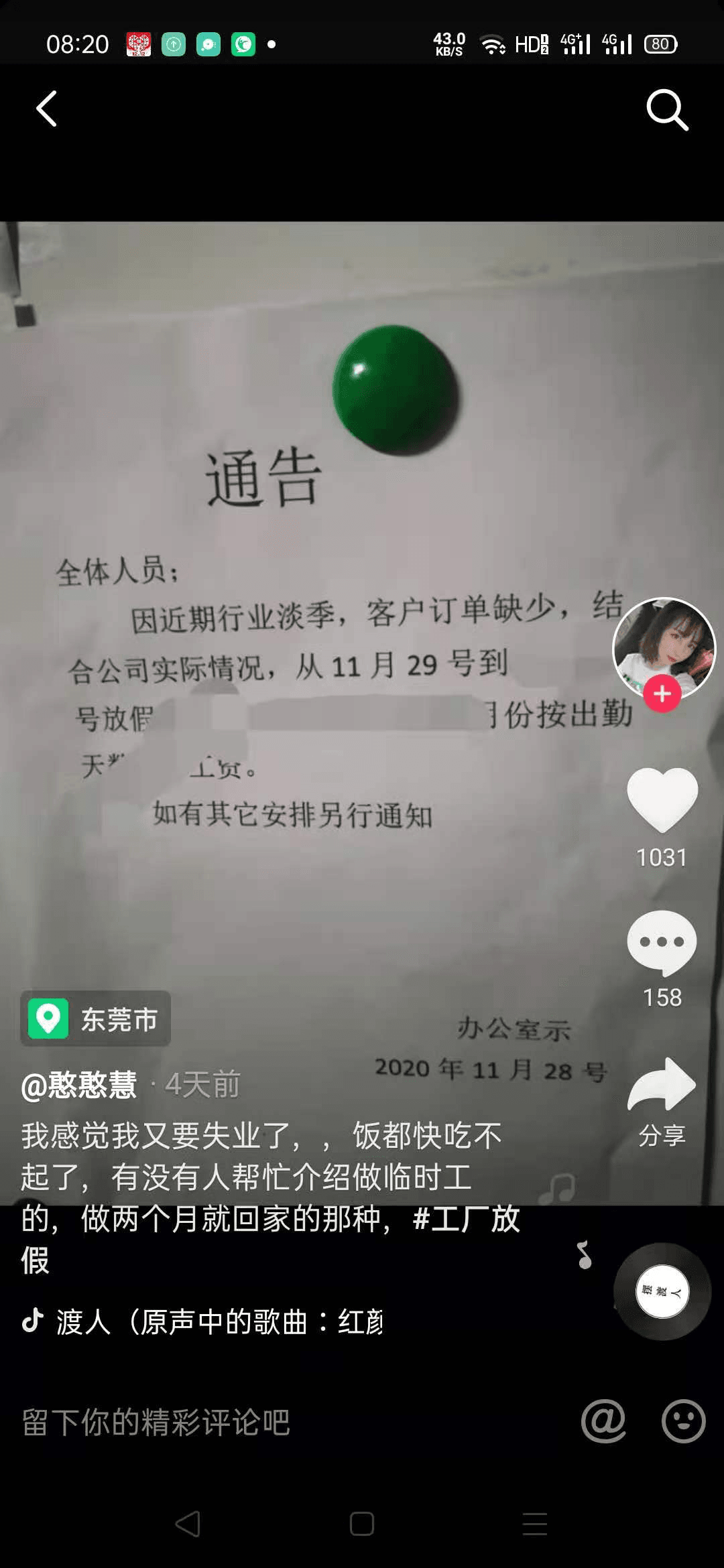 某工廠廠辦于11月末發(fā)布通知,稱因近期外省市疫情再次出現(xiàn)較大影響,為預(yù)防不可控疫情發(fā)生,工廠接通知預(yù)計(jì)12月31日起開始放假。