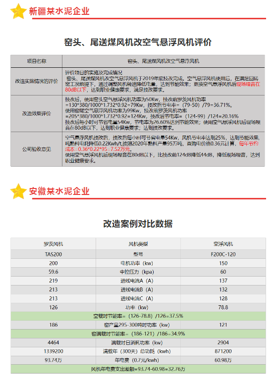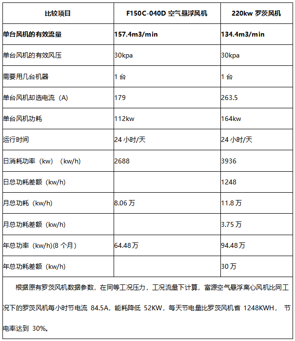 經(jīng)測試:管道壓力27KPa運(yùn)行時(shí)(與羅茨風(fēng)機(jī)管道壓力相同),空氣懸浮風(fēng)機(jī)節(jié)能32.5%。1、同等工況運(yùn)行時(shí),空氣懸浮風(fēng)機(jī)比羅茨風(fēng)機(jī)功率節(jié)能30%以上。2、空氣懸浮風(fēng)機(jī)引用高效葉輪直接連接功能,省去了中間傳動(dòng)裝置,具有無機(jī)械接觸、無振動(dòng)、無需潤滑、易于按裝等特性,其噪聲由原先110分貝降低到78分貝,遠(yuǎn)低于國家規(guī)定噪音限值80分貝,同時(shí)減少了對設(shè)備維護(hù)保養(yǎng)頻率,節(jié)省潤換系統(tǒng)使用的潤換油,避免生產(chǎn)現(xiàn)場的二次污染等。