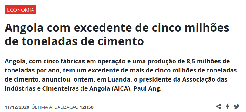 保羅·昂表示,目前安哥拉的水泥價(jià)格不但沒(méi)有上漲,相反已經(jīng)跌落到2015年價(jià)格的一半,從每噸130美元降至如今的60美元。此外,安哥拉水泥產(chǎn)業(yè)所面臨的困難還包括很難獲得外匯來(lái)維持設(shè)備和原料的采購(gòu)。保羅·昂要求政府能夠降低關(guān)稅,以便能向其他國(guó)家大量出口水泥。