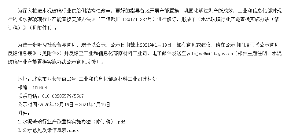 水泥玻璃行業(yè)產(chǎn)能置換實施辦法