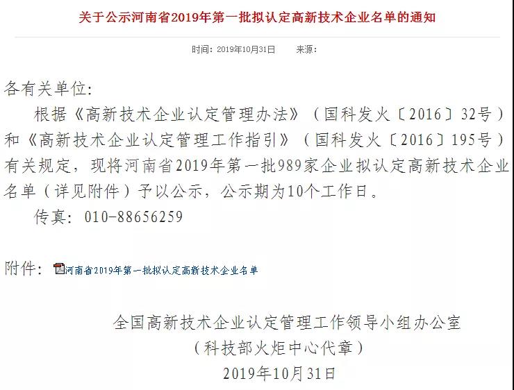 根據國家《高新技術企業(yè)認定管理辦法》(國科發(fā)火〔2016〕32號)和《高新技術企業(yè)認定管理工作指引》(國科發(fā)火〔2016〕195號)有關規(guī)定,全國高新技術企業(yè)認定管理工作領導小組辦公室12月初在官方網站對河南省2020年第三批擬認定高新技術企業(yè)名單進行公示。經過為期10天的公示階段,河南中譽鼎力智能裝備有限公司順利通過“國家高新技術企業(yè)”認定。
