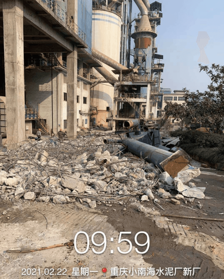 水泥人網(wǎng)通訊員消息,重慶小南海水泥廠兩條1200t/d生產(chǎn)線拆除工作持續(xù)進(jìn)行中。