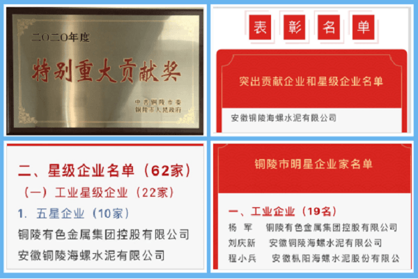 2月18日上午,銅陵市政府組織召開全市雙招雙引暨重大項目攻堅年動員大會。市委書記丁純同志出席會議并講話,市委副書記、市長胡啟生同志主持會議。大會首次對全市有突出貢獻的、發(fā)展快的、質(zhì)態(tài)好的企業(yè)進行了星級評定和表彰。銅陵海螺榮獲“特別重大貢獻獎”“畝均效益貢獻獎”“五星級企業(yè)”稱號,公司總經(jīng)理劉慶新同志榮獲“明星企業(yè)家”稱號,并代表公司接受市委書記丁純同志的現(xiàn)場授牌。