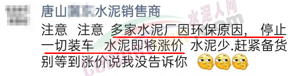 日前,唐山區(qū)域某水泥經(jīng)銷售商通知:“多家水泥廠因環(huán)保原因, 停止一切裝車,水泥即將漲價... ...”