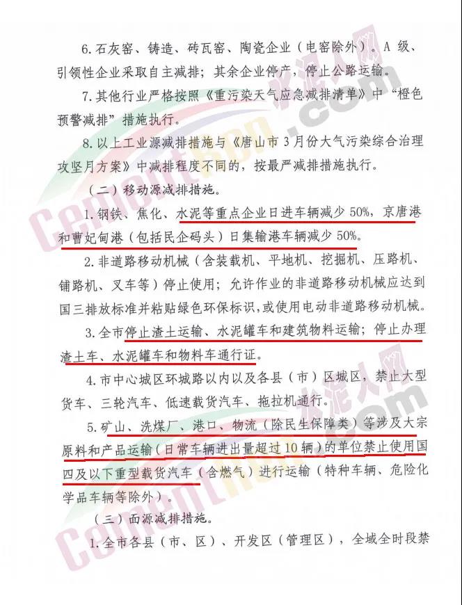 鋼鐵、焦化、水泥等重點(diǎn)企業(yè)日進(jìn)車輛減少50%,京唐港和曹妃甸港(包括民企碼頭)日集輸港車輛減少50%?!?/strong>