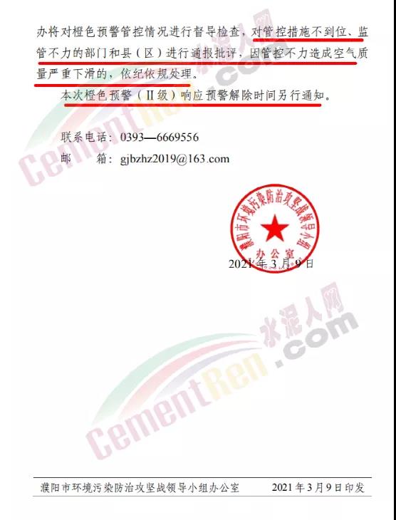 濮陽市環(huán)境污染防治攻堅戰(zhàn)領(lǐng)導小組辦公室發(fā)布《關(guān)于啟動重污染天氣橙色預警(Ⅱ)級響應的通知》自2021年3月9日12時起,啟動重污染天氣橙色預警(Ⅱ級)響應。