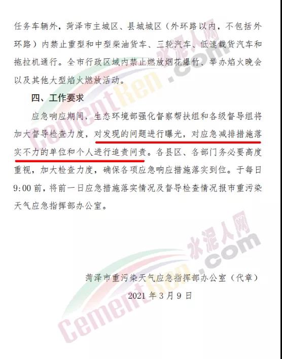 山東省菏澤市重污染天氣應急指揮部辦公室發(fā)布《關(guān)于發(fā)布重污染天氣橙色預警啟動Ⅱ級應急響應的通知》稱于2021年3月9日12時發(fā)布重污染天氣橙色預警,2021年3月10日0時啟動Ⅱ級應急響應。
