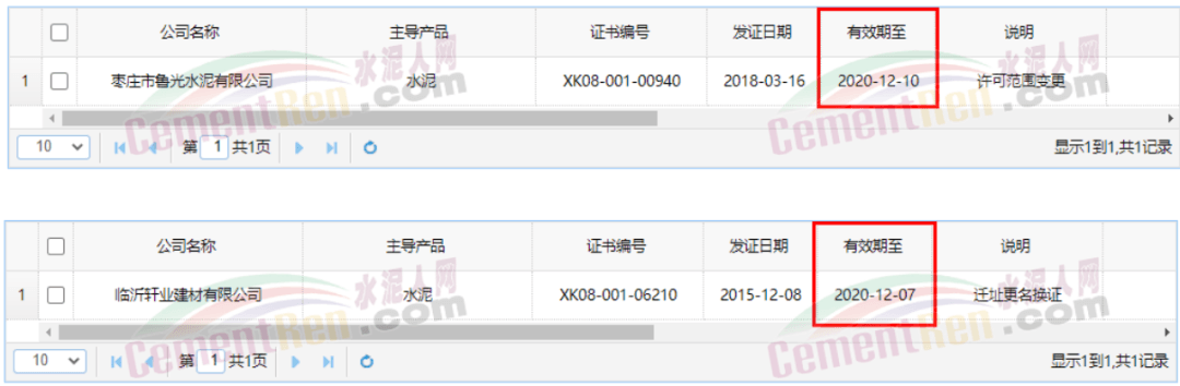 兩家抽檢合格企業(yè),生產(chǎn)許可證有效期至2020年12月