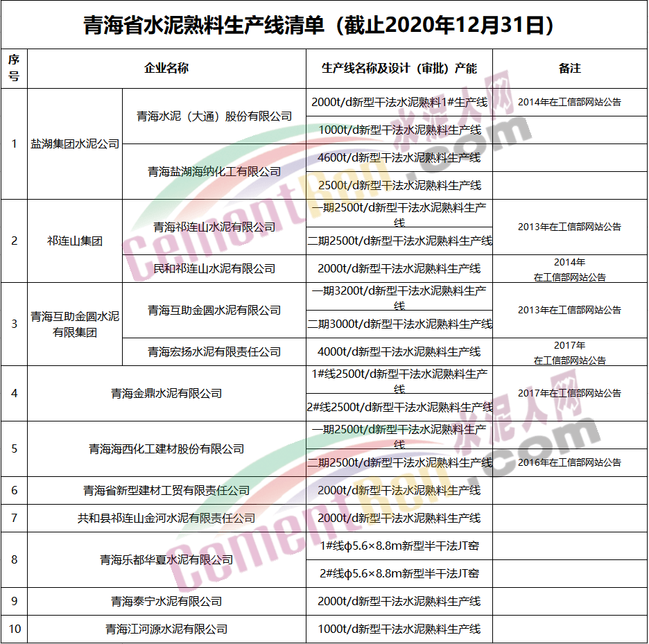 3月31日青海省工信廳發(fā)布《關(guān)于青海省水泥平板玻璃生產(chǎn)線清單的公示》,公示清單中包括13家水泥公司,年產(chǎn)能總計(jì)共1179萬噸/年。