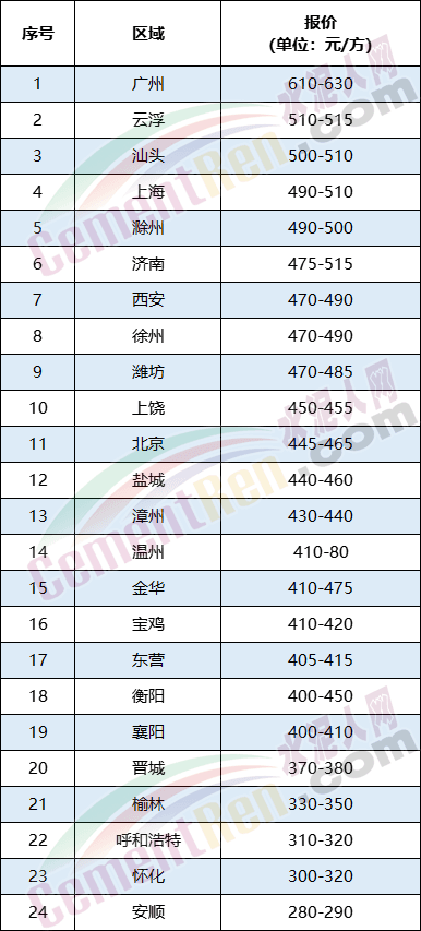 數(shù)據(jù)來源:水泥人網(wǎng)信息中心人工采集,僅供參考,如與實際成交價格不符,請以實際成交價格為準。