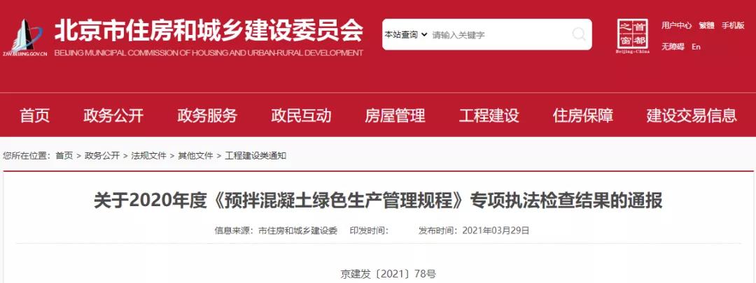 為落實(shí)《關(guān)于開展2020年度北京市地方標(biāo)準(zhǔn)<預(yù)拌混凝土綠色生產(chǎn)管理規(guī)程>執(zhí)行情況專項(xiàng)執(zhí)法檢查的通知》(京建發(fā)〔2020〕122號(hào))要求,市、區(qū)相關(guān)主管部門對(duì)北京市地方標(biāo)準(zhǔn)《預(yù)拌混凝土綠色生產(chǎn)管理規(guī)程》(DB11/T642-2018,以下簡(jiǎn)稱《規(guī)程》)執(zhí)行情況進(jìn)行了專項(xiàng)執(zhí)法檢查,現(xiàn)將檢查結(jié)果通報(bào)如下: