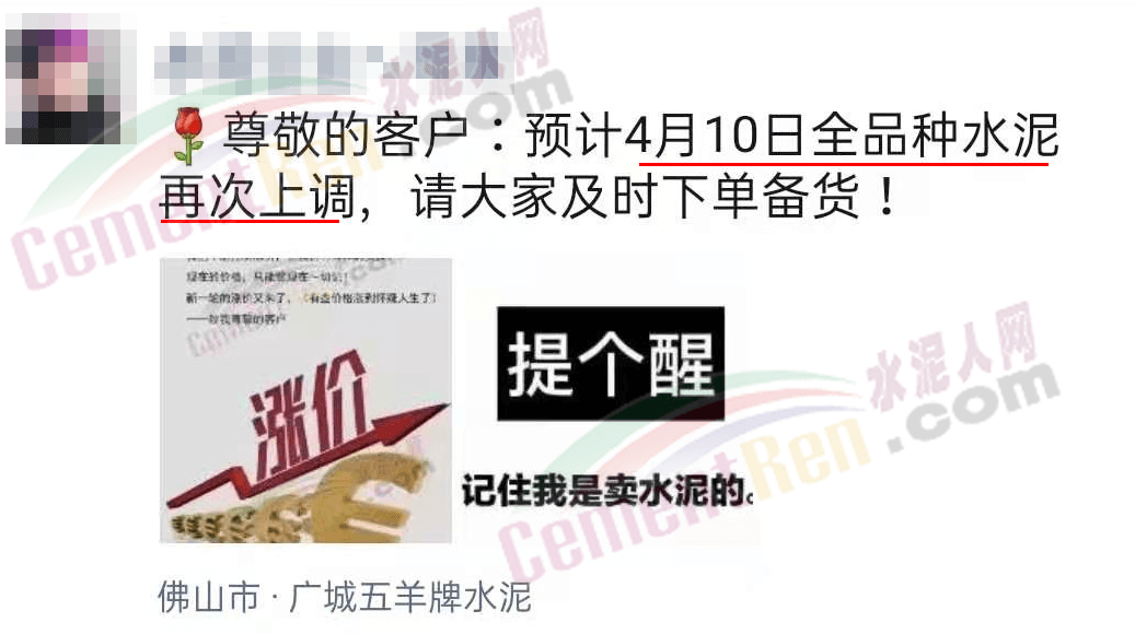 另一家企業(yè)通知,因混凝土原材料不斷上漲,尤其水泥上漲了100元/噸,此舉造成混凝土成本大幅攀升。經(jīng)公司研究決定對混凝土售價進(jìn)行調(diào)整?;炷羶r格在現(xiàn)行結(jié)算價格上上調(diào)80元/立方。起調(diào)日期為4月12日0時。