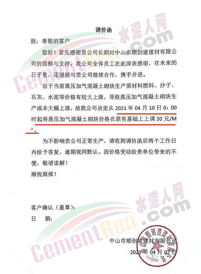 中山市順創(chuàng)建建材有限公司通知,由于當(dāng)前蒸壓加氣混凝土砌塊生產(chǎn)原材料燃料 、沙子、石灰、水泥等價格有較大上漲,導(dǎo)致生產(chǎn)成本大幅上漲,故決定從4月10日零時起蒸壓加氣混凝土砌塊產(chǎn)品價在原有基礎(chǔ)上上調(diào)20元/立方。