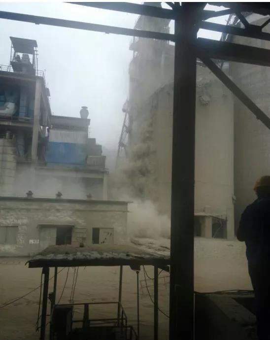 此前,云南某水泥企業(yè)曾發(fā)生過一起水泥庫倒塌事故。工人發(fā)現(xiàn)水泥庫庫中間有個裂縫,上午上報總部,以為高大的水泥庫能撐一撐。誰知到下午裂縫處就開始往外冒水泥,從開始冒水泥十分鐘不到水泥庫就倒塌了,好在無人員傷亡,僅部分現(xiàn)場人員眼睛進(jìn)了水泥灰,后經(jīng)送醫(yī)清洗痊愈。