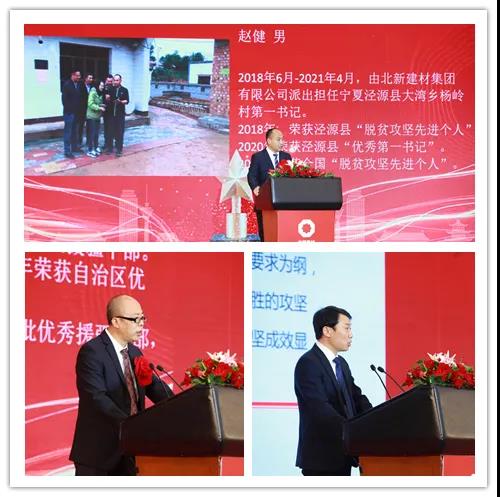 寧夏涇源縣大灣鄉(xiāng)楊嶺村第一書記趙健、第九批中央企業(yè)援疆干部白國峰、扶貧工作先進單位代表高鵬濤分別代表受表彰的扶貧干部、援疆援藏干部、扶貧工作先進單位發(fā)言。大會還呈現(xiàn)了由凱盛科技員工準(zhǔn)備的詩朗誦節(jié)目《為了大地春常在》,五縣區(qū)干部群眾訪談節(jié)目,中國聯(lián)合水泥員工準(zhǔn)備的七彩課堂節(jié)目《愿化星光·點亮夢想》,集團領(lǐng)導(dǎo)、與會嘉賓共同演唱的《歌唱祖國》,為大會營造了濃厚氛圍,讓大家深受感染、倍受感動。